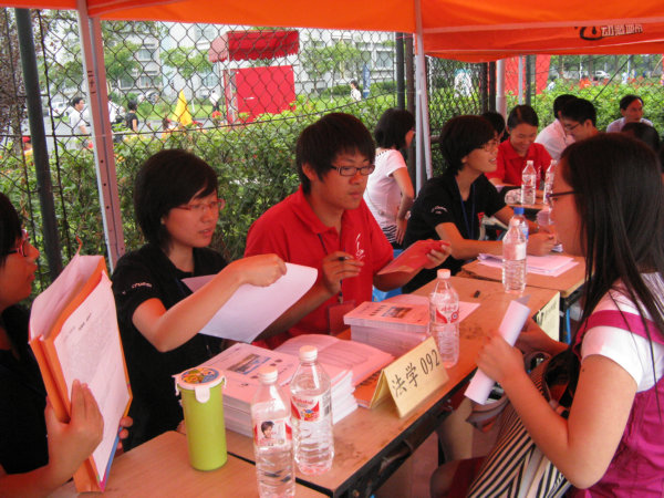 14日仍是新生报到日,这一天继续有新生来校报到。经过前一天紧张接待工作,大家已有点疲惫,但工作上没有丝毫懈怠。负责接待工作的老师与同学坚守岗位、始终如一,不知疲倦地热情细致地迎接每一位刚到的学子及其家长。