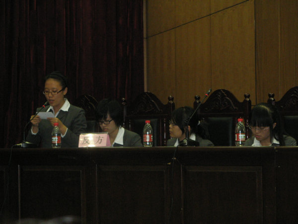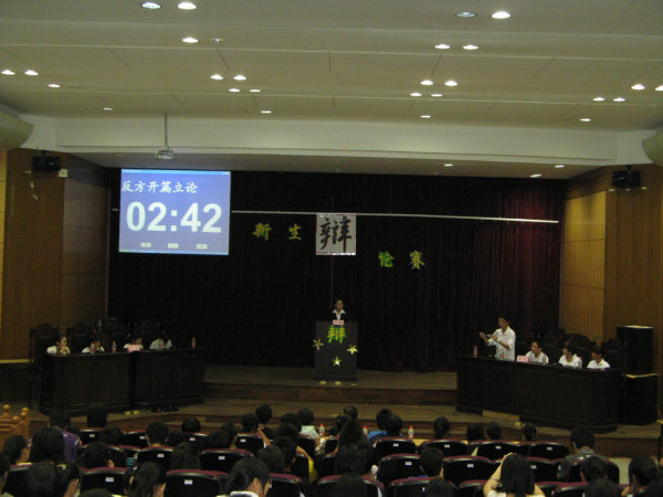 辩论赛唇枪舌战,短暂而激烈,双方的交锋一次次碰撞出智慧火花。评委对本次比赛作了客观的评价,既肯定了各方的气势以及对知识的熟练运用,也对双方存在的缺点作了点评。辩论赛以法092班和法091班的双双胜出而落下帷幕。此次辩论是09级新生入学两周,渐渐适应了忙碌而充实的大学学习与生活之后,一次风采的展现,
