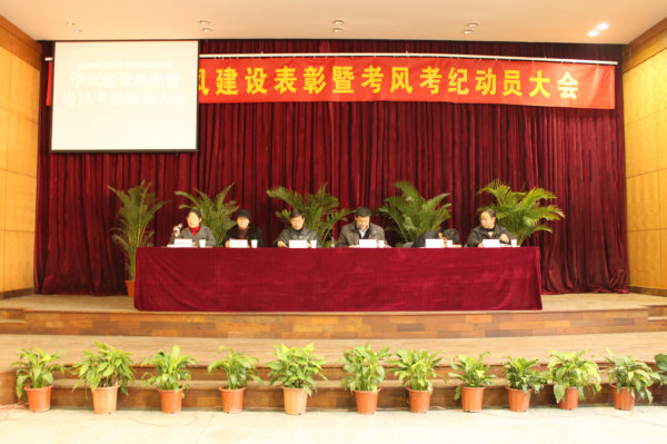 12月23日下午,法学院2009学年学风建设表彰大会暨考风考纪动员大会在模拟法庭隆重举行。出席本次大会的有校招生与就业处副处长马骋老师、法学院院长罗思荣教授、党总支副书记唐钢老师、辅导员和部分老师。