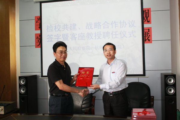 王利琳副校长向冯仁强副检察长颁发客座教授聘书