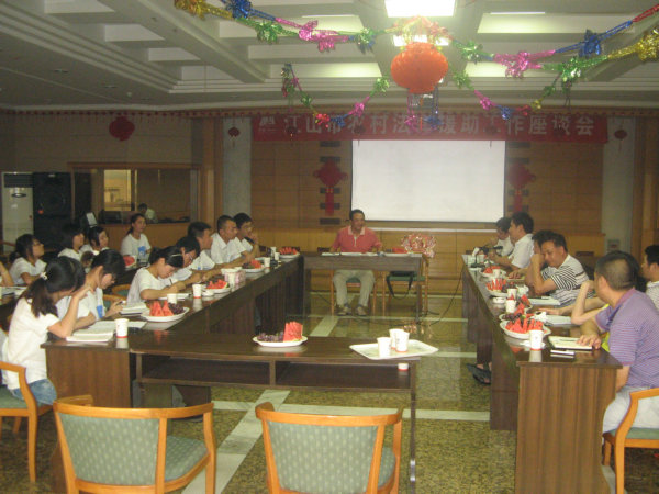 毛科长和与会律师也作了发言。他们表示,法律援助的重点是抓基层队伍建设,并希望法科大学生毕业后参与到法律援助工作中,为这一事业作出贡献。他们对小分队成员就法律援助一些相关问题的请教作了详细讲解。