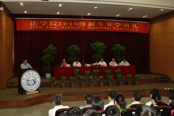 2010年9月6日上午9点,法学院2010级新生正式入学的开学典礼在模拟法庭准时举行。法学院院长罗思荣,党总支副书记唐钢,副院长朱炜、李安,出席了此次开学典礼,范忠信教授、俞静尧教授等部分法学院教师也参加典礼。