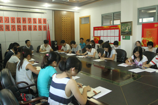 随后,学生会成员与新生临时班委进行了自我介绍,学生会负责人对各部门与新生临时班委的迎新工作作了具体布置,做到责任到人,服务周到,让2011级新生能够安全有序地进入法学院学习生活。