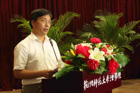 开学典礼在庄严的国歌声中拉开了序幕。典礼由团委老师胡俊主持,罗院长致开幕词。罗院长对在法学院成立十周年之际到来的新生们表示欢迎,并对法学院合理设置的学科专业及优良的师资队伍进行介绍,描绘了法学院良好的发展前景。在其精彩的讲话中,以生动形象的例子告知同学们,法学作为最古老的一门学科,首先要热爱它,才能有明确的目标;在实现目标的过程中,要做一个遵纪守法、诚信正义的法学学子。他鼓励同学们不要拘泥于课本,要在实践中锻炼自己,敢于发现问题、勤于思考。这样才能在今后走上社会时,体现出一个法律人的品质,处理好社会关系。他希望同学们能尽快调整心态,投入大学生活的怀抱。罗院长的讲话,给初入大学校门的新生指明了未来学习生活的道路,展示了大学与高中不同的学习理念与模式。