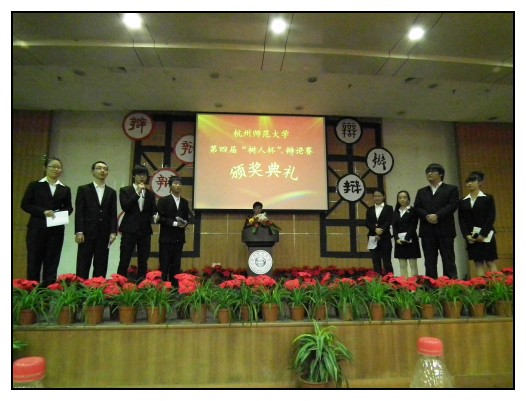 担任了此次次比赛的评委是计量学院校辩论队队长朱湉、浙江大学校辩论队优秀辩手皮鑫、师大校辩论队导师张卫良、财经学院校辩论队导师唐丰鹤和财经学院校辩论队副队长郑喆。