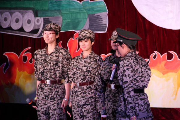 晚会节目丰富多彩。一段由院舞蹈队队长带领队友一起舞动的热辣舞蹈拉开了整场晚会的序幕。接着,2012级新生带来的歌曲联唱,让同学们感受到了新生的才艺。法学121班的小品《军训》表达了对军训的另类诠释,让同学们在笑声中回忆起了这几天军训的点点滴滴。随后,和教官互动环节中,“薪火相传”的游戏使整场晚会达到了一个高潮。