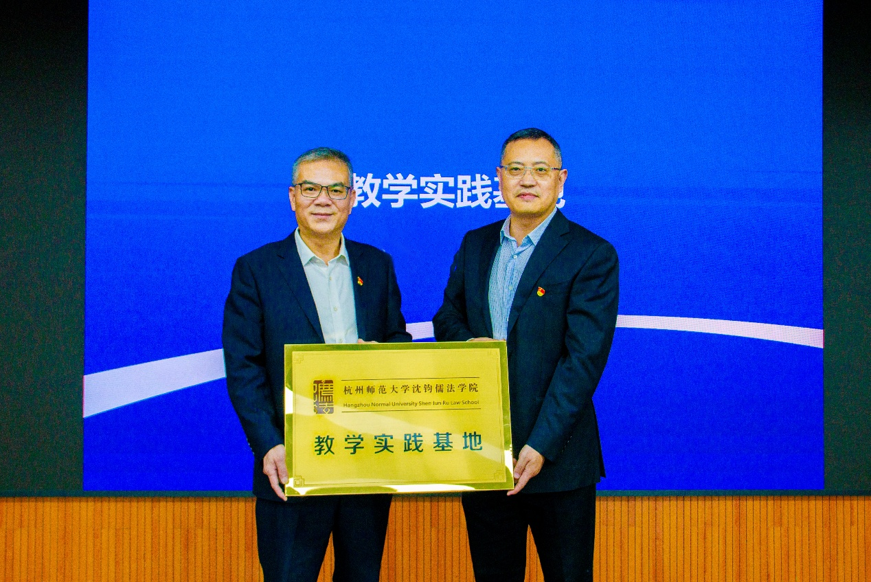 随后,学院副院长赵元成向西湖区律师行业授予“杭州师范大学沈钧儒法学院教学实践基地”牌匾,由西湖区司法局二级调研员陈建华接过牌匾。