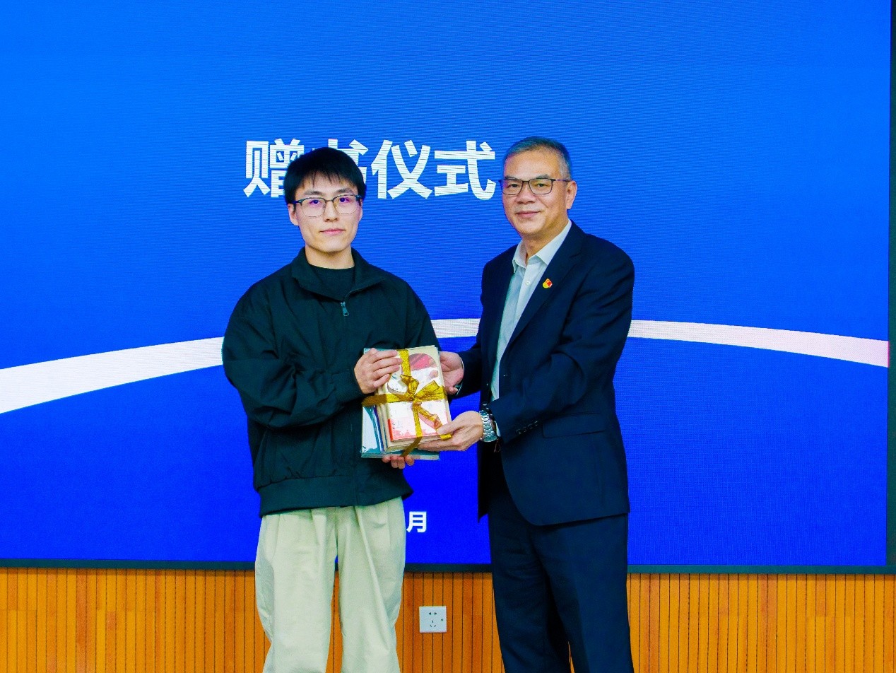 西湖区司法局二级调研员陈建华向学生代表赠送了法律实务书籍。