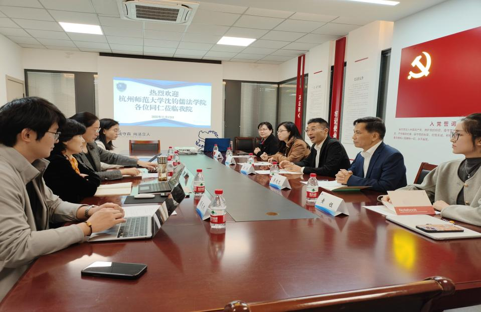 为深入贯彻落实“十五五”规划关于教育高质量发展的战略部署,精准对接新时代涉外法治人才培养需求,2025年11月13日上午杭州师范大学法学院党委书记董伟,国际法教研室主任、涉外法治人才协同培养创新基地主任李建忠教授等一行,专程赴宁波大学法学院开展专题调研。双方围绕党建工作创新、涉外法治人才培养、党建与学科建设融合等核心议题展开深度交流,共探法学教育与学科发展新路径。