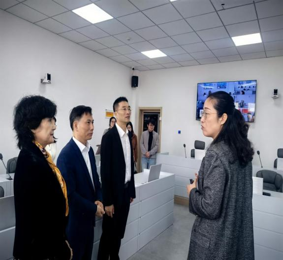 调研期间,董伟书记一行还参观了宁波大学法学院的党建文化特色长廊、模拟法庭、国际调解庭、国际刑事法庭实验室等场所,实地考察了其在党建阵地建设、实践教学等方面的硬件设施与特色成果。